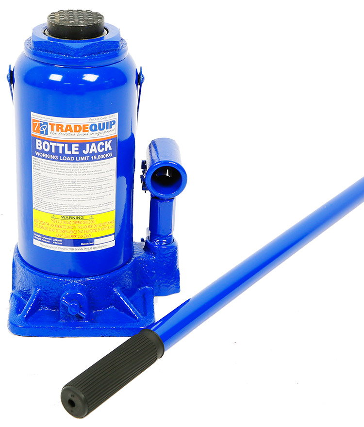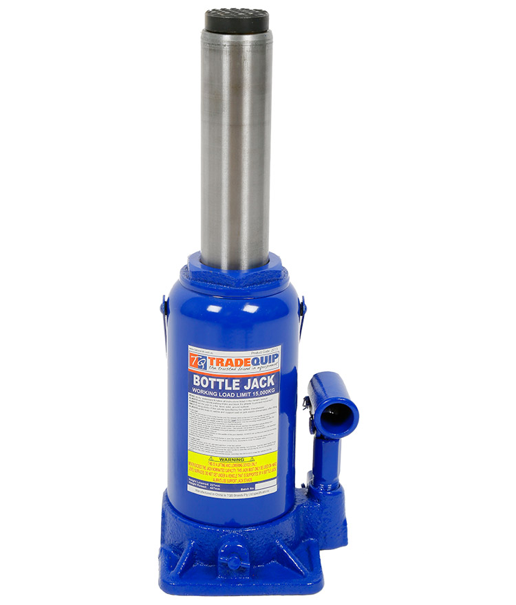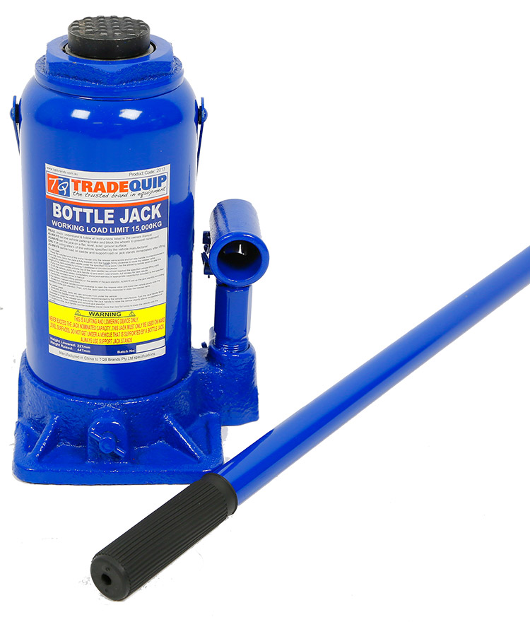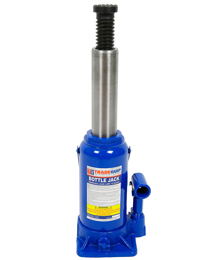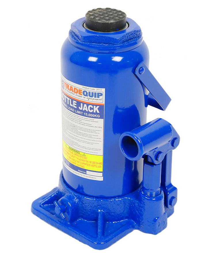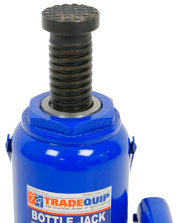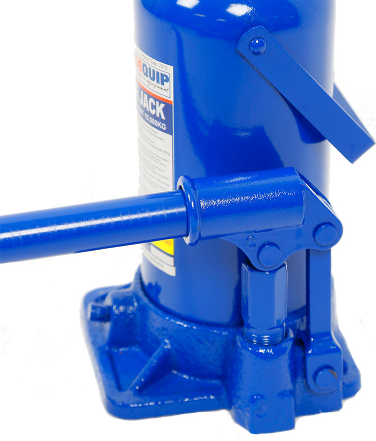 This powerful, heavy-duty TradeQuip Hydraulic Bottle Jack with high quality glide-action pressure pump is designed for hard-hitting commercial use, making large loads easy to lift. The lightweight jack is ideal for lifting farm vehicles, heavy-duty machinery, industrial construction equipment and more. High quality, fitted with unique overload protection system and large stable base. Supplied with 500mm pump handle.