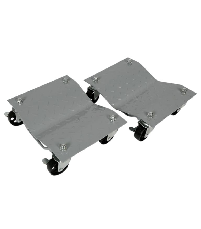 A pair of TradeQuip "Made for the Trade" wheel dollies provides an easy way to move a car, suv, heavy machinery and more, all by yourself. Each dolly is fitted with four heavy duty swivel castors. Robust steel manufacture enables up to 680kg weight to be carried on each dolly. Designed to locate underneath vehicle wheels allowing precise and easy movement within confined spaces.