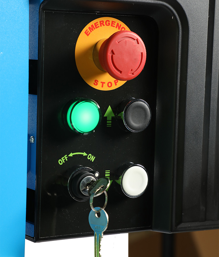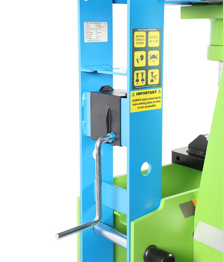 - Easy to access raise & lower buttons on press frame with large emergency stop button