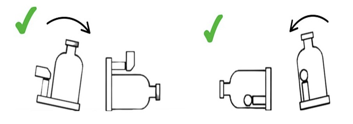 The Borum BR02 series Bottle Jacks can be used horizontally when the pump is positioned above the ram housing or lying on their side with the pump positioned as per the illustrations below. Refer to the owners manual for more information.