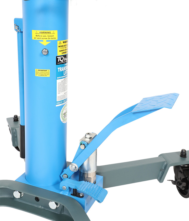 This TQ Pro "Latest Applied Technologies" 2-Stage Hydraulic Telescopic Transmission Lifter offers a wide range of versatility designed to help increase workshop productivity. Designed for lifting passenger car transmissions, the universal mounting lifting platform provides a wide four way tilt range and the wide base is enhanced by four premium nylon swivel castors for safer maneuvering around the workshop. The convenient rapid lift without load and slow descent with load is controlled via the foot operated pump and release valve to keep the mechanic’s hands free during use. The height and lifting platform adjustability of this telescopic Transmission Lifter makes it great for any transmission installation or removal. CNC technology, ensures the chassis and frame constructed of superior-grade steel is manufactured to exacting standards that meet TQ Pro expectations for professional quality and durability.