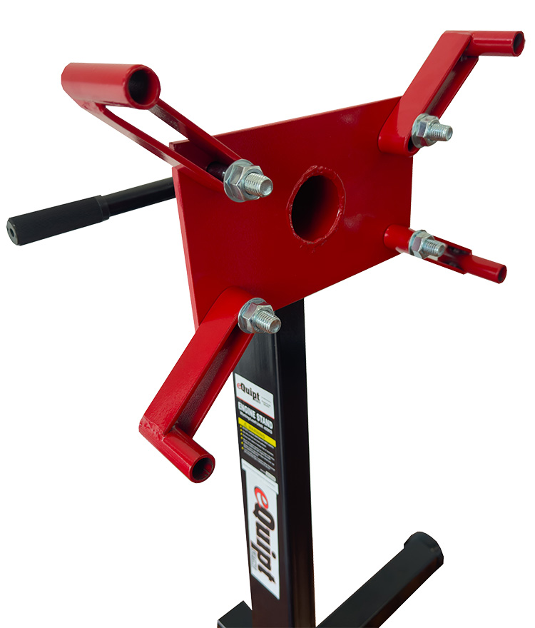 eQuipt "Designed to Deliver" 450kg Engine Stand has a 4-leg design featuring a rugged frame with a 4-hole mounting head that rotates 360°, making the unit ideal for 4 cylinder engines. When you've got an engine repair job that can’t be completed while the engine block is in the vehicle, this engine stand provides a sturdy support structure to secure the removed engine in mid-air, so you can access any part of it. Use an engine crane to remove the engine from the vehicle, then mount it to the faceplate on this engine stand. (Previous models include product code/s; 1006, RLES450, TQES450)